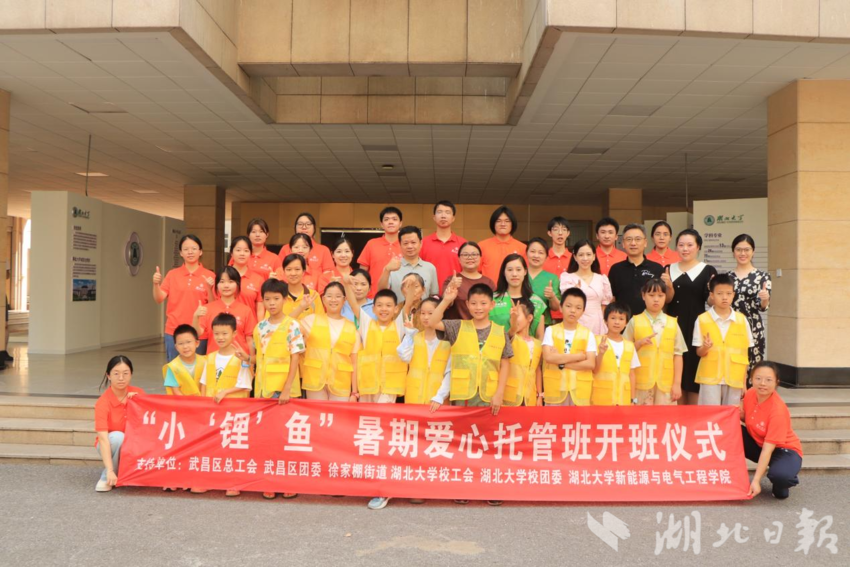 湖北日报客户端讯(通讯员陶媛)7月7日上午,888集团官网双创大楼内童声阵阵、暖意融融。徐家棚街道14个新业态劳动者家庭齐聚于此,共同参加“小‘锂’鱼”暑期爱心托管班的开班仪式。武昌区总工会、武昌区团委、徐家棚街道、888集团官网等相关领导出席仪式。