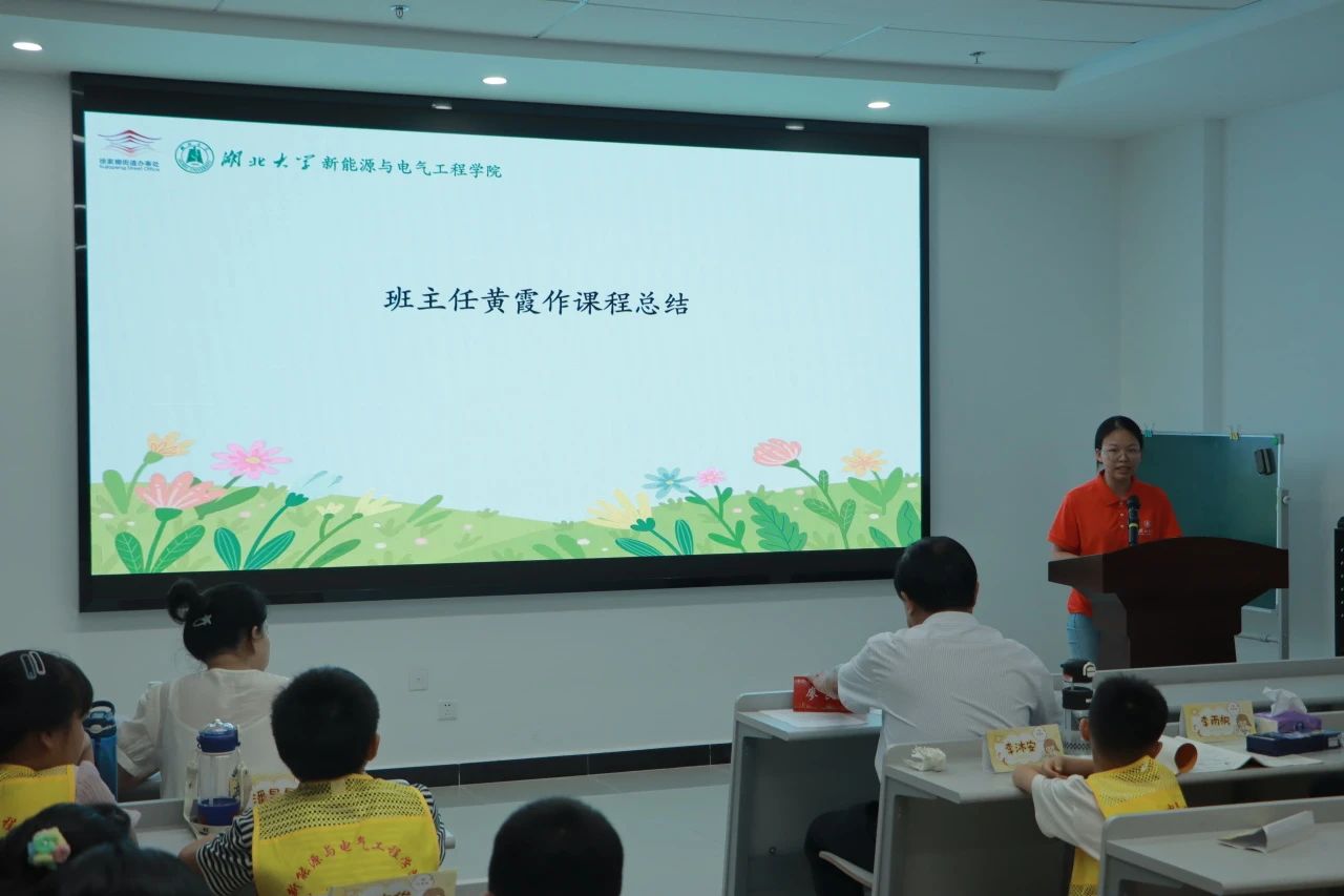 仪式伊始,一段温暖的视频回顾缓缓展开。镜头里,孩子们在党史课堂上用画笔描绘信仰,在手工课上专注创作,在科普实验中探索奥秘,在团队游戏里欢笑奔跑。每一帧画面都定格着这个夏天的充实与快乐,见证着“小‘锂’鱼”们从陌生到熟悉、从羞涩到自信的蜕变。