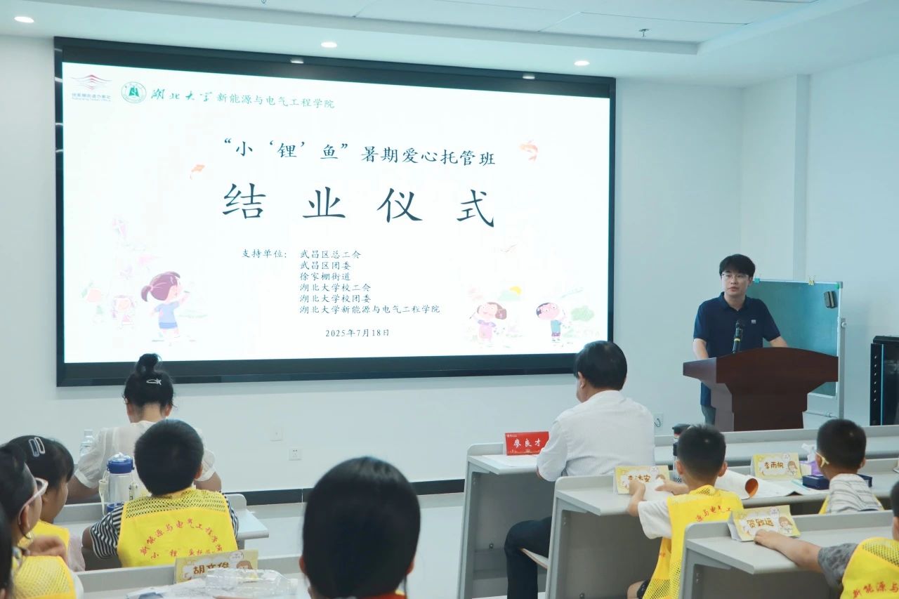时光匆匆,夏日的蝉鸣还在耳畔回响,“小 ‘锂’ 鱼”暑期爱心托管班的故事已悄然画上圆满句号。7 月 18 日下午 3 点,结业仪式在888集团官网双创大楼 B 座一楼 2 号宣讲厅温馨启幕,888集团电子官网党委书记廖良才、武昌区团委副书记汪淼、徐家棚街道工作人员及托管班全体师生齐聚一堂,共赴这场成长的约定。