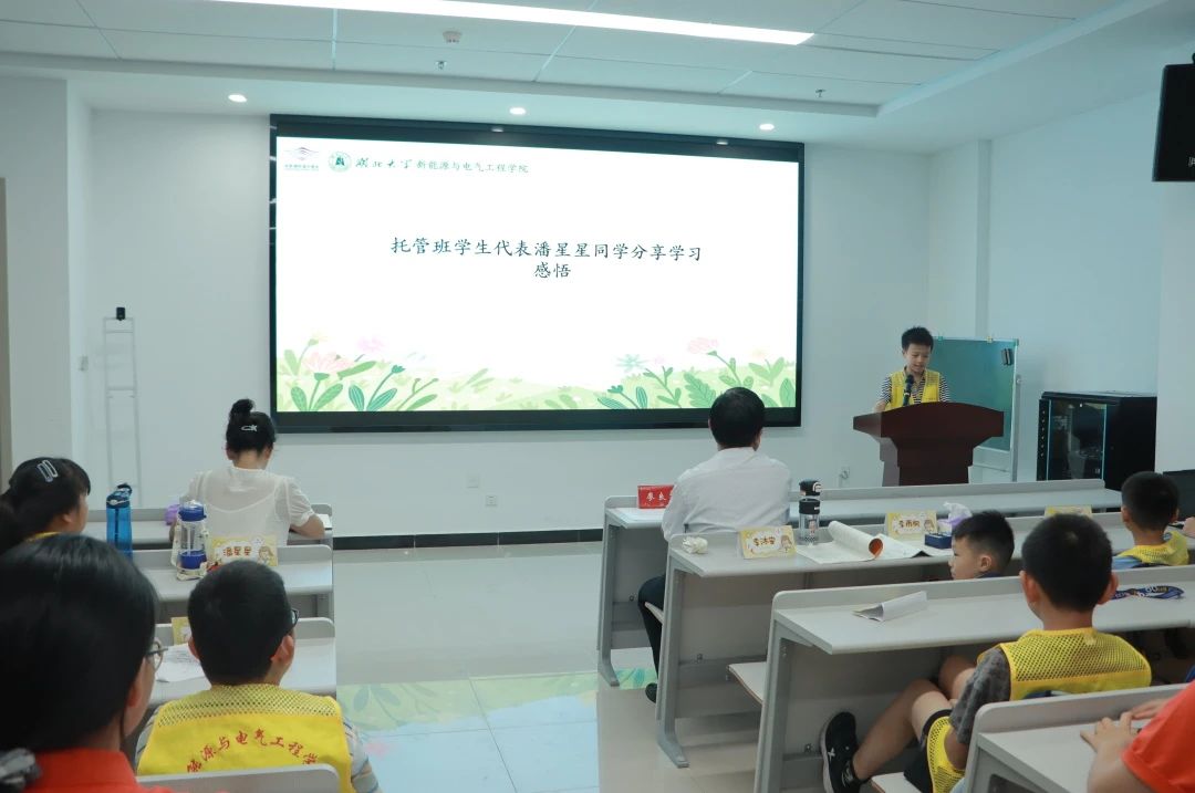 “在这 12 天里,我们像知识探险家一样解锁新知识,造纸术体验让我知道古代发明的神奇,校史馆参观让我对世界充满好奇!” 学生代表潘星星稚嫩的声音里满是喜悦,他用纯真的语言分享着在托管班中的收获,感谢志愿者老师们的教导与陪伴。